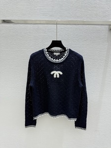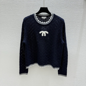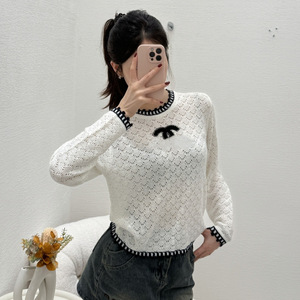 深圳南油货~高版本CH家25 早秋新款 拼色镂空针织长袖 女