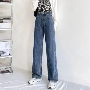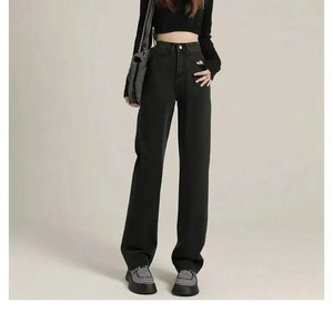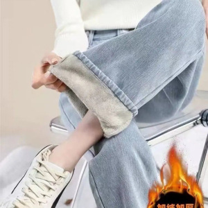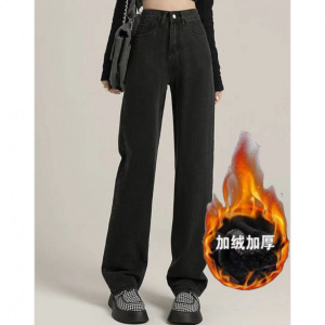 2025高腰牛仔裤女加绒加厚直筒休闲阔腿拖地秋冬新款百搭显瘦