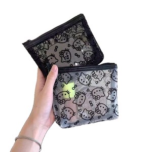 透明网纱kitty补妆包便携外出化妆包收纳旅行装实用零钱包耳机包