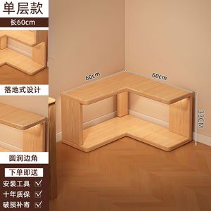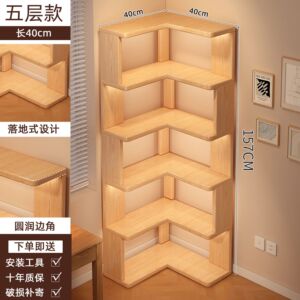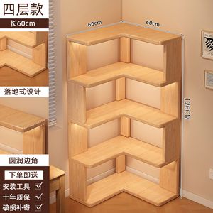 一体转角实木书架置物架靠墙落地窄柜家用拐角收纳架子书柜储物柜