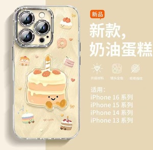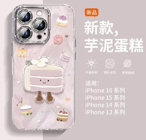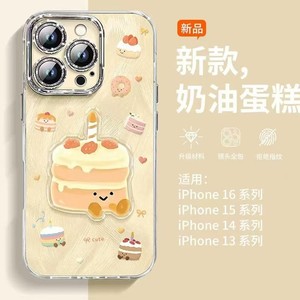 创意蛋糕羽纱壳适用苹果16promax手机壳13可爱14带镜头膜15情侣11