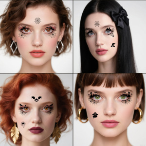 跨境新品万圣节蜘蛛眼角贴派对临时搞怪高级ins蝙蝠妆容纹身贴纸