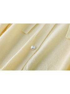 韩系甜美毛衣秋季女装系带V领钩花蝴蝶结长袖纯羊毛针织开衫外套