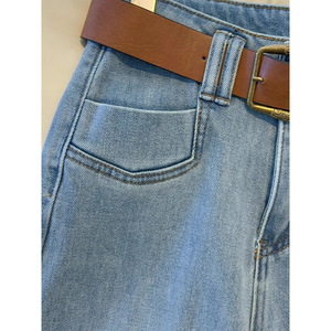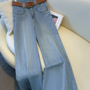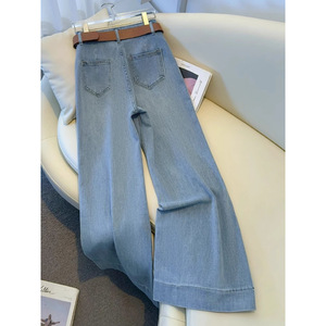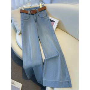 a版大微喇阔腿牛仔裤女春秋季新款感高腰垂感浅色长裤拖地裤