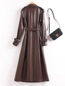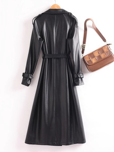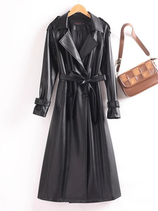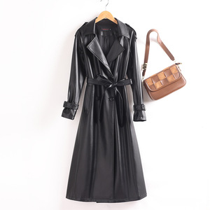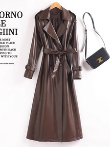 海宁皮衣女25新春秋过膝加长款韩版女士皮风衣休闲翻领皮外套512