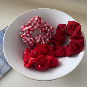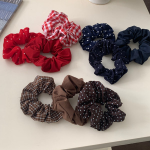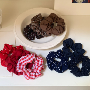3条装 洋气百搭波点格纹小肠圈发绳高弹力丸子头皮筋头绳马尾发饰