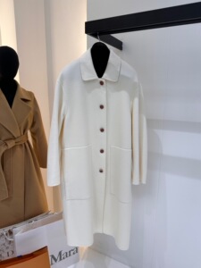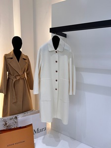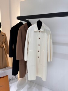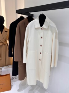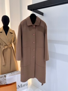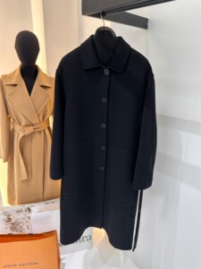 H家25秋冬新款纯色双面山羊绒大衣双面呢长款系带外套爱马HES女仕