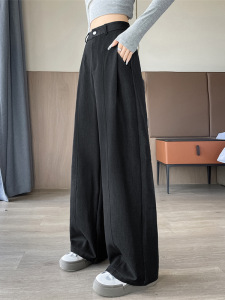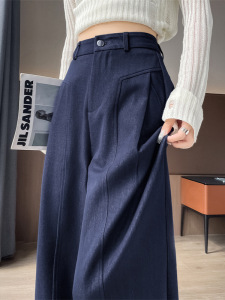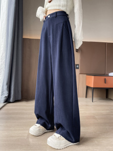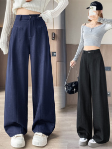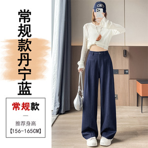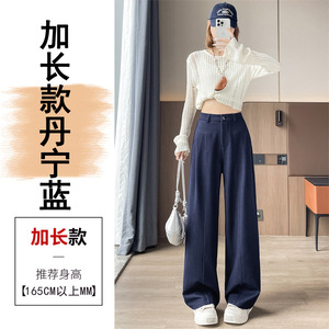 深蓝色窄版阔腿牛仔裤女秋冬季新款加长宽松高个子垂感直筒休闲裤