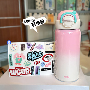显眼包保温杯弹盖双饮大容量吸管杯女生高颜值便携不锈钢喝水杯