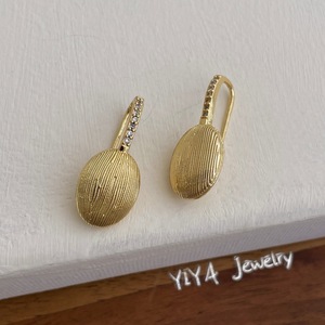 高级感小众时尚金色拉丝椭圆豆豆耳钩小众轻奢法式耳钉耳环耳饰品