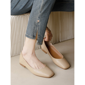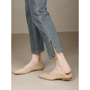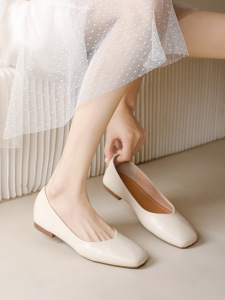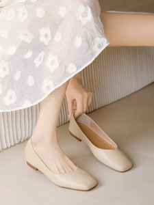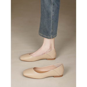 裸色奶奶鞋女夏平底2025年新款浅口瓢鞋法式工作两穿单鞋真皮女鞋