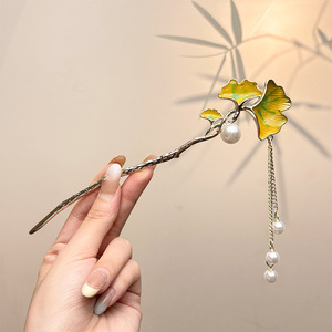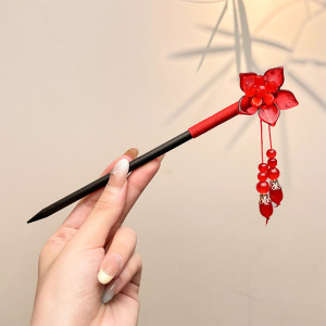 高级感发新中式古风汉服簪子女日常通勤盘发器木质流苏发钗头饰