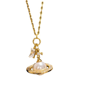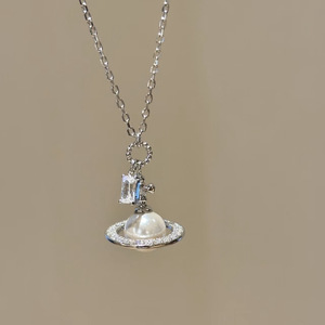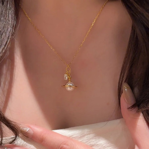 S925银珍珠星球项链女时尚轻奢风微镶工艺温柔百搭土星吊坠项链