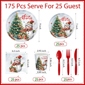 新款圣诞雪人圣诞树礼物一次性餐具套装派对装饰一次性纸盘子套装