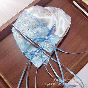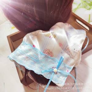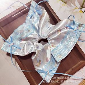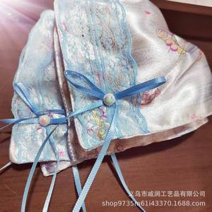 原创手作~缎面条纹奶油系可爱兔兔方巾重工蕾丝珍珠飘带韩系风