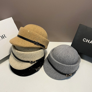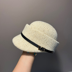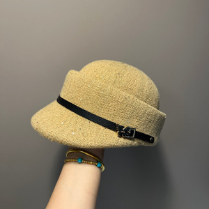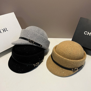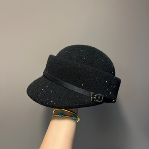 帽子女士秋冬季英伦复古小礼帽洋气蝴蝶结鸭舌帽亮片圆顶马术帽