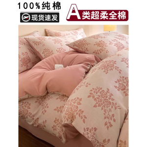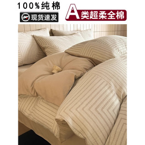 高级感纯棉磨毛全棉床上四件套家用2025新款被套简约床单人三件套
