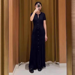 法式优雅25秋冬新款优雅编织提花单排扣针织连衣裙2色