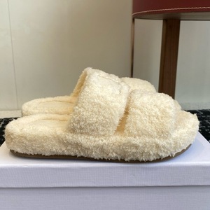 凯旋门毛毛鞋女厚底增高拖鞋外穿女2025秋冬新款真毛羊毛平底女鞋