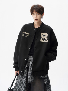 潮牌设计感棒球服男女秋季美式字母刺绣外套高街百搭休闲情侣夹克