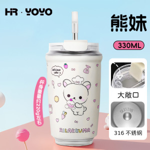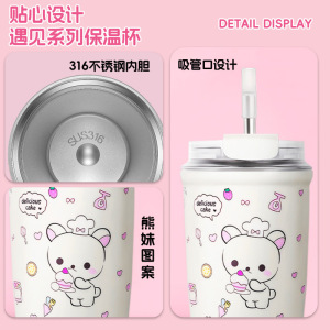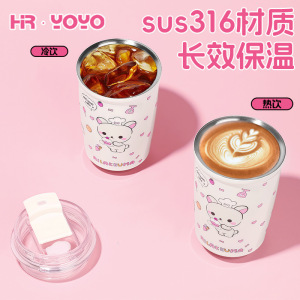 高颜值卡通316不锈钢保温杯高颜值双层真空咖啡杯便携车载吸管杯