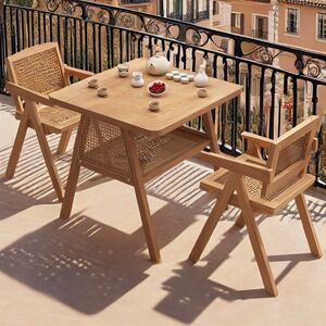 实木阳台茶桌椅组合简约洽谈桌网红一桌两椅小户型休闲藤椅三件套
