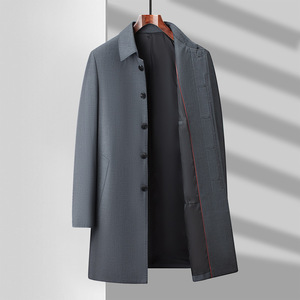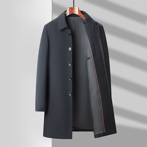 跨境大码风衣男士商务风衣大衣都市通勤过膝中长免烫质感风衣外套