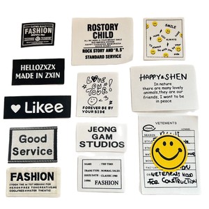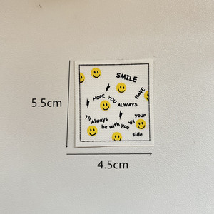 潮流时尚黑白字母笑脸手工布标衣服包包牛仔裤缝纫丝网印印刷布贴