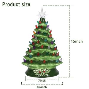 跨境15英寸绿色陶瓷圣诞树发光小夜灯电池ul美规插电节日装饰摆件