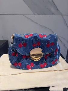 驴家包包质樱桃系列元宝丹宁牛仔包手提包腋下刺绣单肩包女
