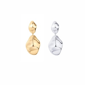 亚马逊新款个性潮流泪滴造型吊坠耳环抛光空心夸张重工几何耳饰女