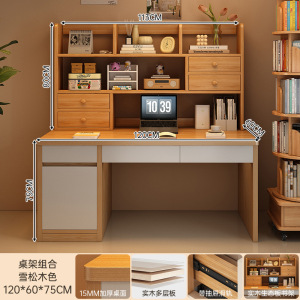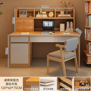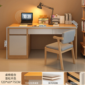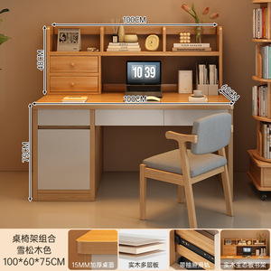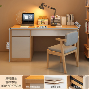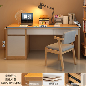 实木书桌学生家用学习桌台式电脑桌简约现代办公桌卧室带抽屉桌子