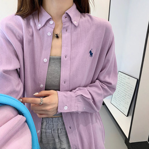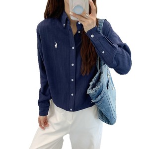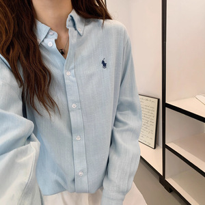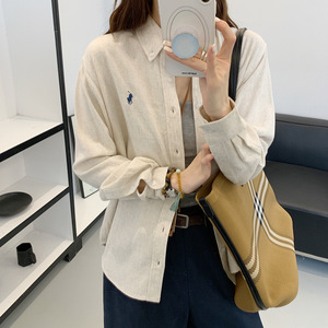 2025秋冬新款高品质亚麻衬衫小马标刺绣老钱风潮牌慵懒棉麻女衬衣