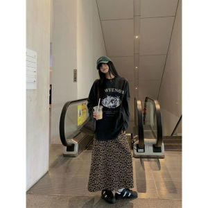 美式印花中长款卫衣+豹纹半身裙女2025年秋季新款韩版时尚套装潮