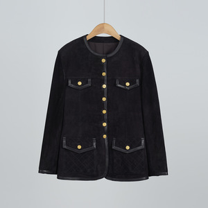 法国订单香家源版 100%哑光绒面绵羊皮D制山茶花金属扣皮衣外套女