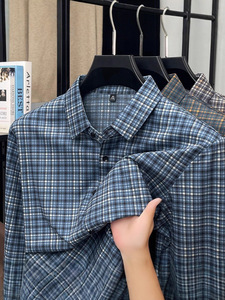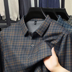 抖音跨境外贸男士商务休闲长袖经典格子衬衫秋季休闲无痕批发代发