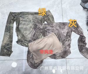 美式辣妹设计感一字肩晕染网纱长袖T恤+内搭抹胸带胸垫两件套女