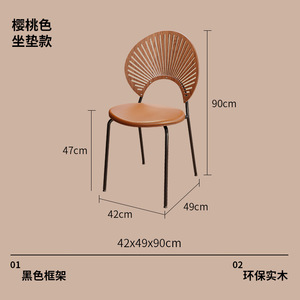 【加粗黑色椅腿】樱桃木丨贝壳造型丨实木镂空座面