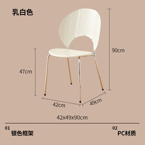 【加粗电镀椅腿】象牙白丨贝壳造型丨PU软包座面
