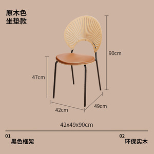 【加粗黑色椅腿】原木色丨贝壳造型丨实木镂空座面