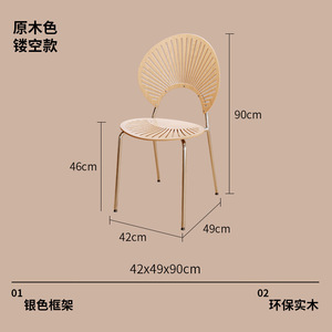 【加粗电镀椅腿】原木色丨贝壳造型丨实木镂空座面