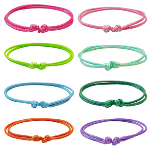 跨境友谊手链多色混搭简约设计男女纯色双层蜡线防水编织绳手绳