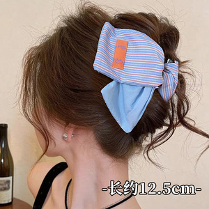 7#浅蓝色蝴蝶结牛仔三角夹-13cm
