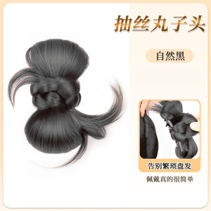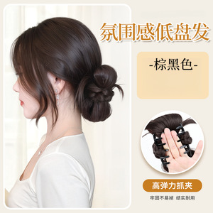 鸡毛低丸子头假发抓夹式花苞头明星同款盘发发圈发饰后脑勺假发包