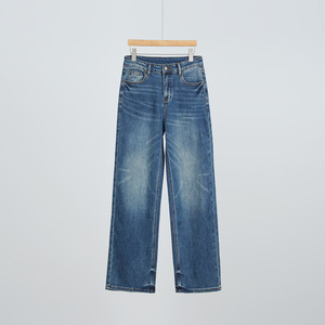 意大利普家带标版 手工猫须工艺复古水洗时髦感阔腿牛仔长裤四季