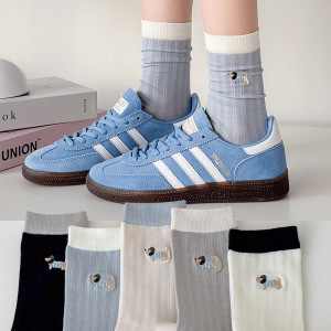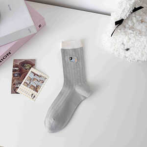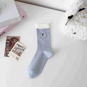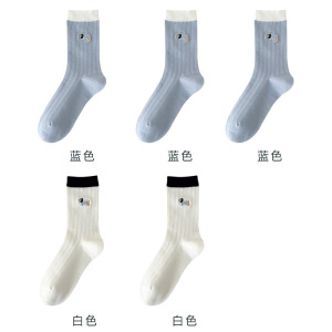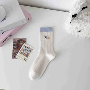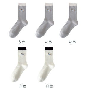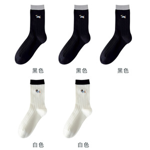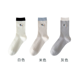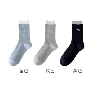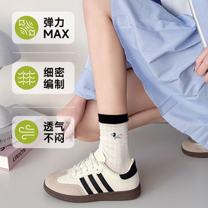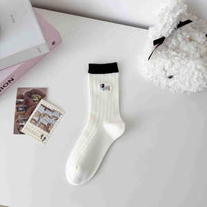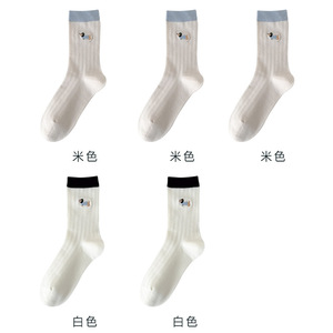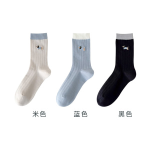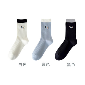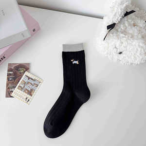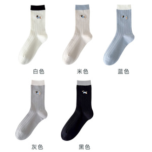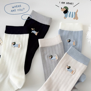 无骨袜子女刺绣卡通小狗春夏薄款透气抽条女袜中筒棉袜百搭校园袜