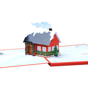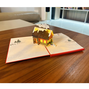 弹出式圣诞小屋灯光立体贺卡礼物创意氛围感3D发光祝福手工卡片