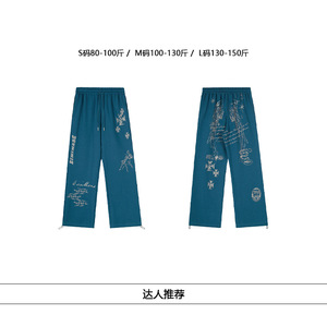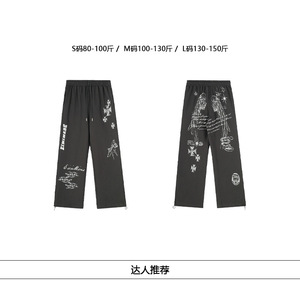 美式高街个性印花暗黑系宽松直筒抽绳长裤男女垂感运动百搭阔腿裤