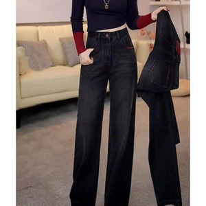 牛仔裤女阔腿裤秋冬2025新款黑色显瘦高腰直筒薯条裤
