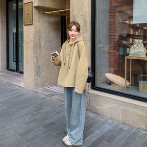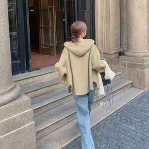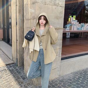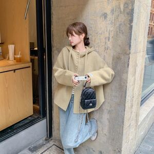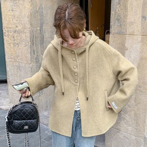 短款外套大衣女秋冬新款小个子宽松短款连帽双面毛呢外套